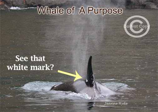 ...we heard someone say, "one of them has a white patch." (see that white on the dorsal fin - above)...bingo - if it was on the left side it would be T38A ...if it was on the right side it would be T38C...