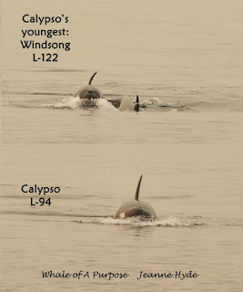 footnotes: It was heartwarming to read the Center for Whale Research's encounter summary from 9/4, when J, K, and L pod whales were in the Strait of Juan de Fuca, when Ken Balcomb wrote that Shachi J-19 "who seems to have taken over as leader" yay...I don't have to say 'trending leader' any more! What also was heartwarming was that he stated the whales were 'frisky and appeared in good condition' ...which I translate as that they have been eating well during their long time on the outer coast. That's what is most needed, that they survive.