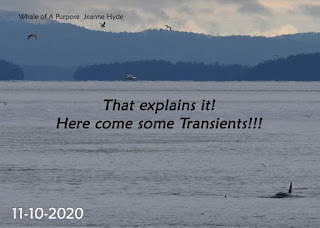 ...and shortly after posting this I learn that J Pod went north in the night and showed up in heading toward the Strait of Georgia.